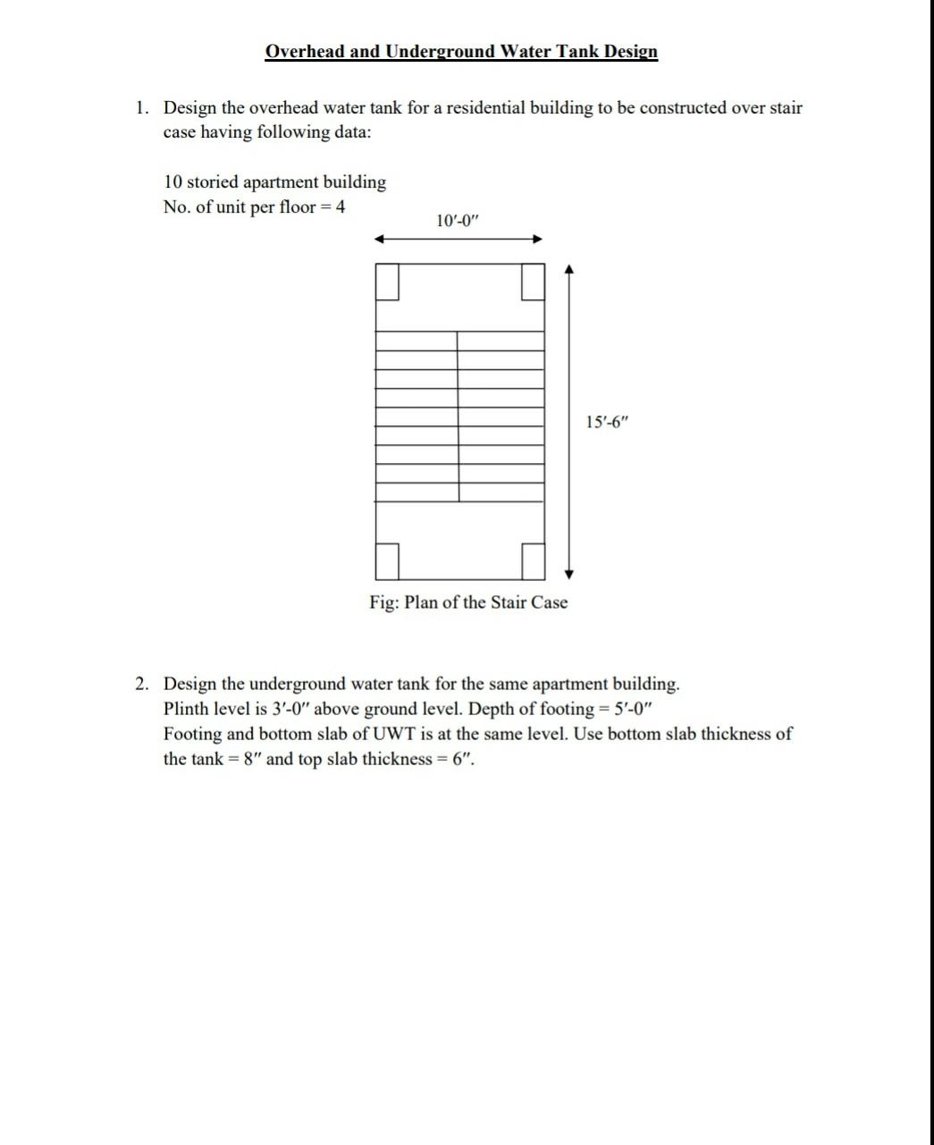 In this video lecture you are able to learn how to design a water tank for a small family.to read articles :www.civilglobal.comhow to check cement quality. Study the guidelines for the. Design of overhead water tank design of rcc structures as per nbc (national building code, 2005) standards, water required per person per day = 150 water tank design example. The design of reinforced concrete water tank is based on is 3370: The staging is also designed for wind.